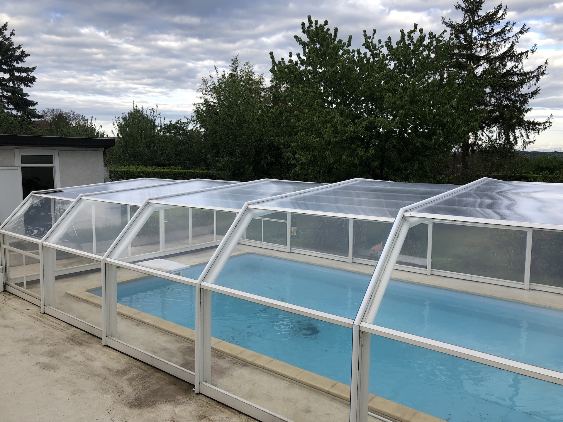 Un abri de piscine reste exposé à de nombreuses contraintes : vent, pluie, soleil, dilatation des matériaux… C’est pourquoi nous proposons aussi un service complet de diagnostic et de reprise si besoin.